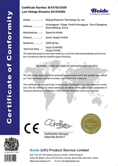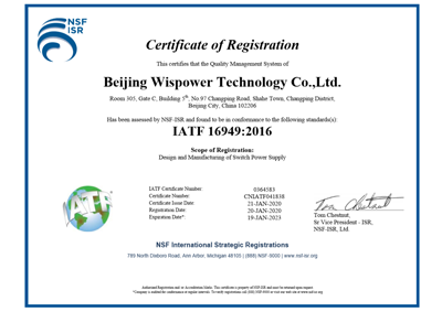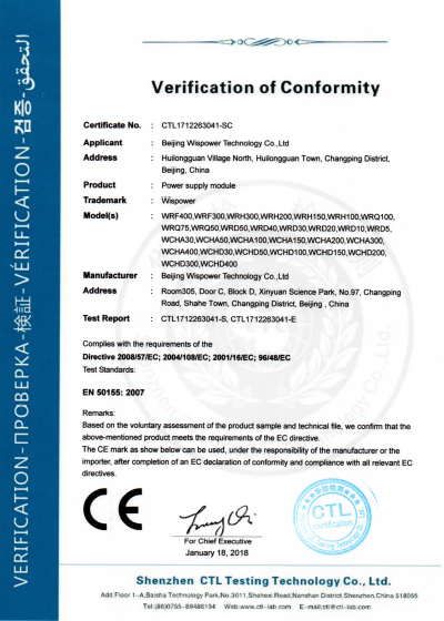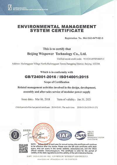 伟仕电源视产品质量为企业生命,不断学习最新的电源技术,不断优化管理,引进先进生产技术及设备,公司固安工厂2019扩建了无尘车间、升级了SMT生产线和自动化测试设备,成立了电磁兼容测试中心为生产制造高可靠性电源提供了有力的保障。固安工厂通过了ISO9001国际质量体系认证、GJB9001C质量体系认证及IATF16949汽车行业质量体系认证,公司注重绿色环保,公司通过ISO14001:2015环境体系认证。